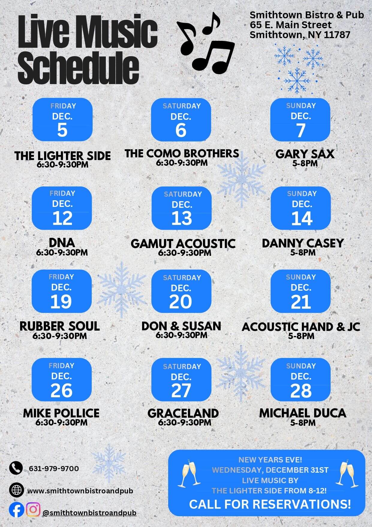6:30pm-9:30pmLive Music Michael DucaFriday, January 16th, 2026